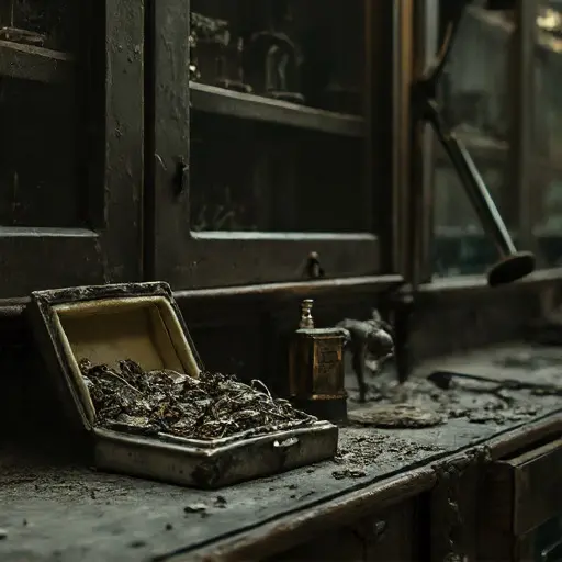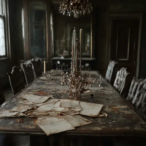 The financial evidence of Bernard’s mounting crisis—fueled by his single-minded obsession with Edward’s future—is found in the Formal Study. On the immense, dark oak desk, a leather-bound financial ledger lies open. The final, hastily written entry, dated late 1918, details a massive, disastrous expenditure on a single, expensive breeding stallion intended for Edward—a final, desperate attempt to bind his son to the family business. The total expenditure far exceeded his available capital, rendering the estate insolvent. The page is marked with a dried, dark ink stain where the pen fell.