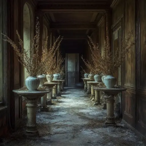 Her life ended within these walls in 1917, according to local records, succumbing to a sudden, unknown illness. But the story persists that she simply withered away alongside her plants, consumed by the silence and the suffocating focus of her passion. The house reflects her presence everywhere: in the countless pots scattered across the floors and in the delicate, dried vines that now clutch at the walls, as if trying to restrain the decay.