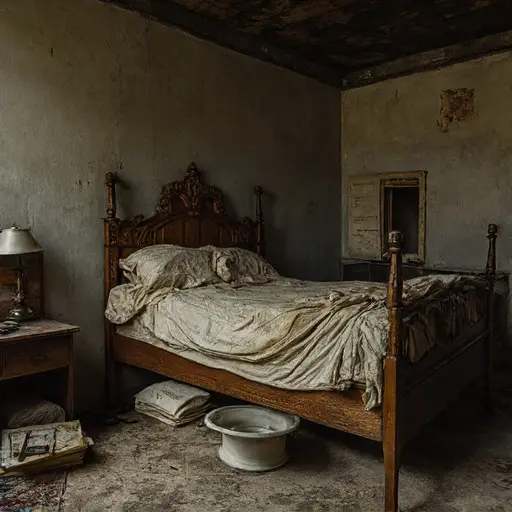 The house remains abandoned, maps and instruments frozen mid-creation, preserving the quiet persistence of cartography interrupted, unresolved, and suspended in hushed neglect, a testament to meticulous study left incomplete.