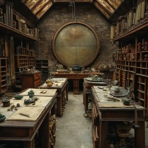 A profound quiet fills the Cartographer’s Loft, where penciled contour notes on a half-finished map halt abruptly, hinting at unfinished charts and suspended calculations.