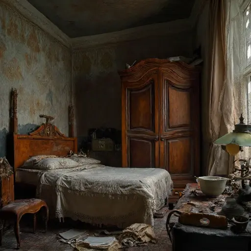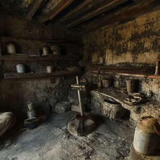 The house remains abandoned, its looms and threads suspended in quiet anticipation, preserving the interrupted rhythm of craftsmanship that will never resume, a hushed testament to abandoned labor and careful intent.