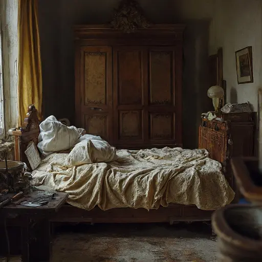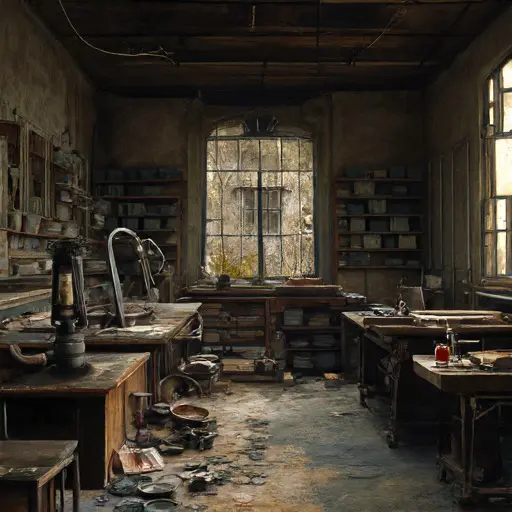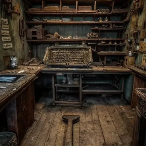 The house remains abandoned, its type blocks, tools, and drafts suspended in quiet anticipation, preserving the halted rhythm of typographic creation that will never resume, a silent testament to careful labor left unfinished.