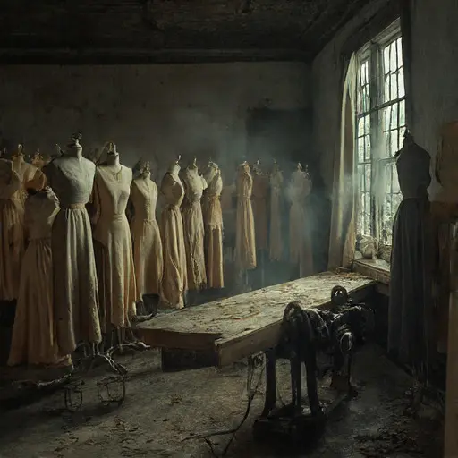 The resident of Obsidian Plinth was Isabelle Morrow, a once-celebrated, but increasingly isolated, couture dressmaker who designed for the wealthiest families in the region. Isabelle’s genius was in garments that transformed the wearer—allowing her clients to assume new identities with every stitch. After her own disastrous public scandal involving a ruined society wedding dress, Isabelle retreated to the mansion she built in 1878, turning her obsession inward. She stopped designing for others and focused exclusively on creating an enormous, private collection of gowns for a single, imagined life.