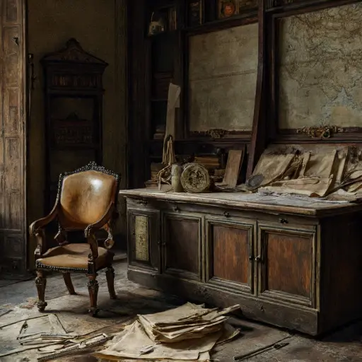 The Study hums with frozen calculation. On the drafting table, penciled codex notes trail off abruptly. Every compass, quill, and ruler embodies meticulous labor abruptly paused, the rhythm of cartography suspended in quiet stillness.