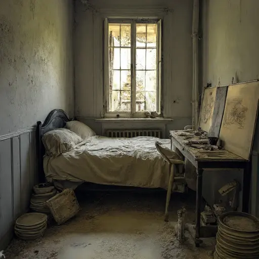 The house remains abandoned, its plates, tools, and draft a quiet testament to interrupted engraving and unresolved devotion.
