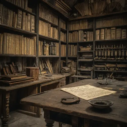 The Studio radiates quiet discipline. Here, the inkpot was central: every stroke measured, each letter flowing from careful study and practiced control. Parchment is pinned to the desk, quills still poised above blank lines, the room frozen mid-creation as though time itself had hesitated.
