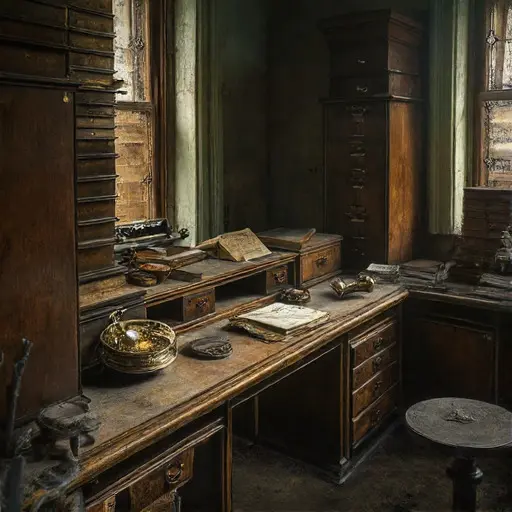 The desk holds Moretti’s final entries. Ledgers lie open, calculations partially completed. Marginal notes grow cautious and tentative. Decline came not from illness but from a minor client audit, a discrepancy in a ledger entry. Though unproven, suspicion spread quietly. New accounts were delayed, new ledgers left untouched. One drawer remains tied with string, containing disputed receipts never resolved. Work ceased without confrontation, letter, or explanation.
