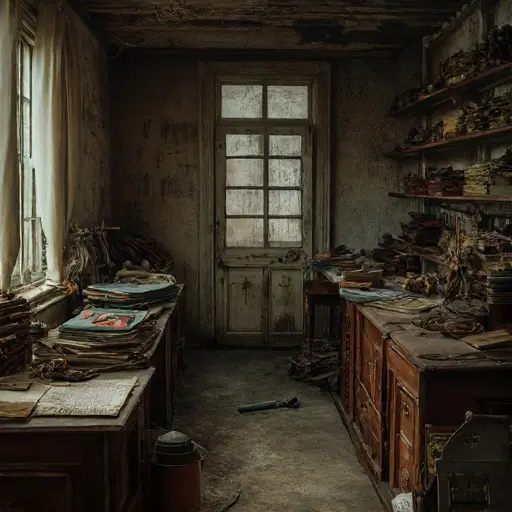 No explanation survives for her departure or why the weaving room was never reopened. Threads, looms, and pattern sheets remain poised in quiet equilibrium, a testament to interrupted labor, halted craft, and silent abandonment preserved in meticulous order.