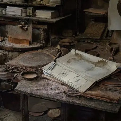 This atelier belonged to Henri Moreau, engraver (b. 1879, Lyon), trained in French engraving schools and apprenticed under regional masters of printmaking. His skill is evident in the meticulous hatching and signed plates. A note pinned to a shelf mentions his daughter, Juliette Moreau, asking him to “check the ink density.” Henri’s temperament was methodical and patient; ambition focused on reproducing civic documents, illustrations, and private commissions with exacting clarity.