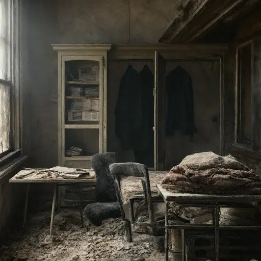 The house remains abandoned, its plates, papers, and ledger a quiet testament to interrupted engraving and unresolved dedication.
