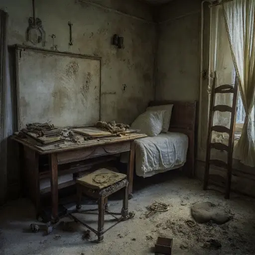 The house remains abandoned, its clocks, gears, and manuscript a quiet testament to interrupted horology and unresolved devotion.