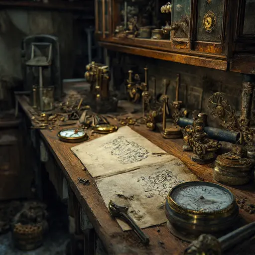 This workshop belonged to Leopold Oppenheim, clockmaker (b. 1873, Nuremberg), trained in German guilds and apprenticed in specialized horology workshops. His skill is evident in delicate escapements, precise gearing, and consistently timed mechanisms. A small note tucked in a drawer references his sister, Adelheid Oppenheim, reminding him to “finish the commission for the town hall clock.” Leopold’s temperament was patient, exacting, and obsessive; ambition focused on crafting masterful clocks, refining mechanisms, and maintaining thorough diagrams of every movement, recording each adjustment with meticulous care.