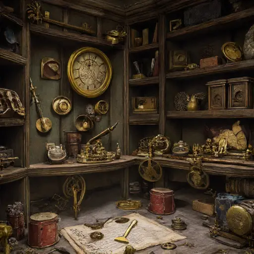 The Clockmaker Workshop hums with frozen precision. Here, the manuscript guided every adjustment: gears aligned, springs tensioned, escapements calibrated. Tools remain mid-use, timepieces half-disassembled, and work halted.