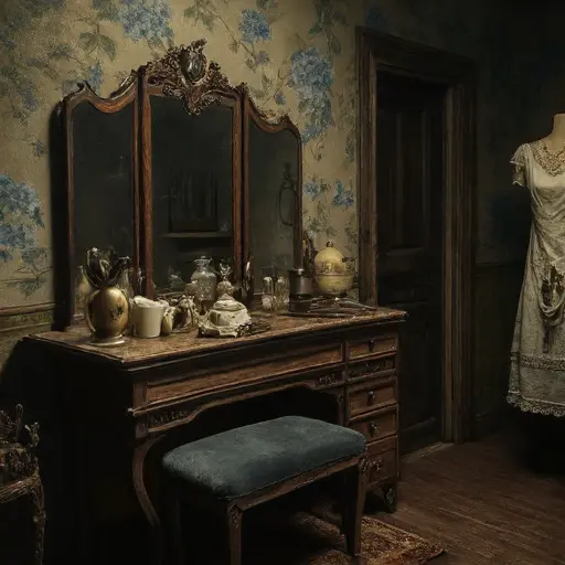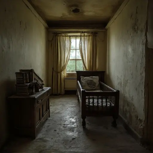 At the far end of the nursery hall, behind a false panel, lies a room not on the original blueprints. Roughly the size of a closet, it contains only a wooden cot, a crate of illustrated children’s books, and a single pair of patent leather shoes, still buckled. The walls are bare, save for a penciled drawing of a tree — childish, uncertain, unfinished. Dust lies thick, undisturbed.