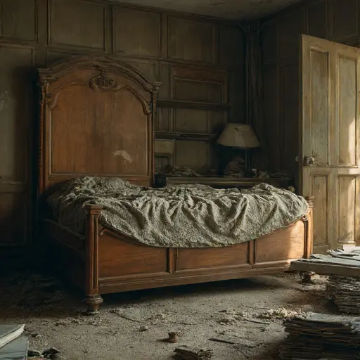 The house remains abandoned, vats, sheets, and tools frozen in quiet incompletion, every batch and pulp suspended, awaiting hands that will never return.
