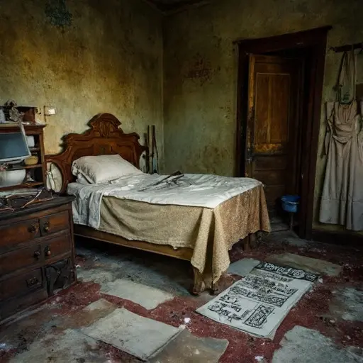 The house remains abandoned, stencils, prints, and tools awaiting hands that will not return, the quiet heavy with unfinished artistry and lost mastery.