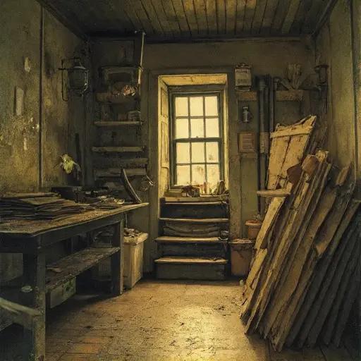 Returning to the Printmaking Studio, all unease circles back to the faint crease across the misaligned print. Its bend is slight yet unmistakable, the kind of flaw Hiroshi would never allow to stand. The mounting brush nearby bears dry, clumped bristles—forgotten mid-cleaning. A cherry block sits face-down, its carved waves partly inked, as though the final print run halted mid-process.