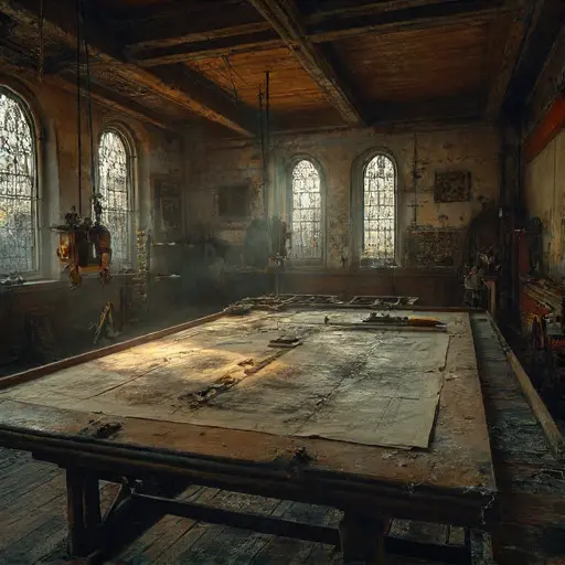 Cincture-Rivet House was an architectural study in forced unity: a massive, sprawling structure of dark, heavily reinforced brick, characterized by numerous external metal straps and internal iron columns that suggested it was being held together by external force. Its name suggested a blend of restrictive belt and binding metal fastener. The house sat low on a remote, exposed coastal flat, making it perpetually battered by wind and salt spray. Upon entering the main engineering studio, the air was immediately cold, thin, and carried a potent, mineral scent of aged iron, machine grease, and a sharp, metallic tang. The floors were rough, uneven concrete, amplifying every faint sound into an unsettling echo. The silence here was not merely quiet; it was an intense, structural stillness, the profound hush that follows the failure of a massive, complex machine. This abandoned Victorian house was a giant, sealed engine, designed to achieve and hold a state of absolute, unchangeable physical cohesion.