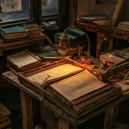 Strains surface in subtle corners. In the Upper Washstand Chamber, a jar of paste water has soured, its surface clouded—an oversight foreign to Edmund’s usual rigor. A crumpled invoice from a London supplier—edges blurred by moisture—lists sharply rising costs for calfskin. In the Guest Cot Room, a travel coat lies open but empty, save for a folded sanding pad used for spine rounding. No trunk, no books, no tools prepared for departure.