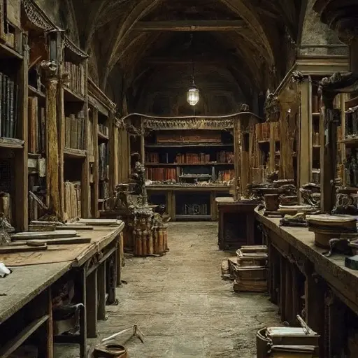 The vault once held the calm of labor well-understood. Marbled endpapers from Hamburg traders fill a crate beside the press. Spools of waxed linen thread shine under a lantern’s rim. A ledger of commissions bears neat columns of finished works, each marked with steady confidence.