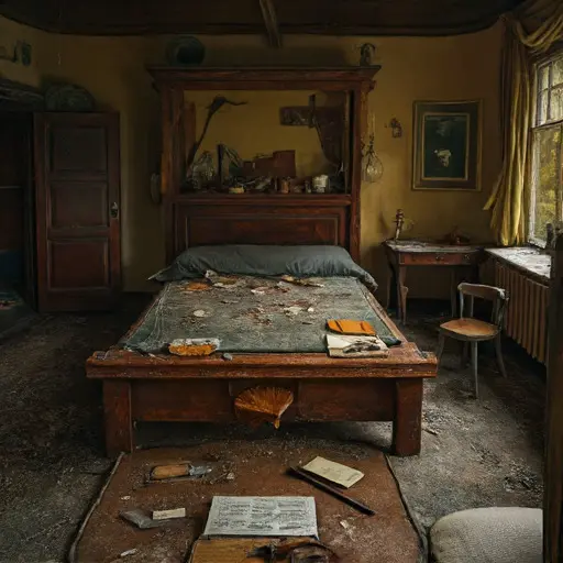 The house remains abandoned, filled with unassembled clocks and quiet, still measures, a testament to craftsmanship left suspended and unresolved.