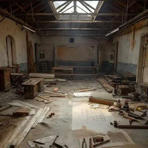 The house remains abandoned, drafting tools, plans, and sketches awaiting hands that will not return, the quiet heavy with unfinished architecture and lost mastery.