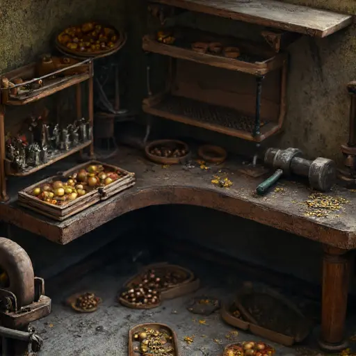 This workshop belonged to Miguel Almeida, goldsmith (b. 1874, Lisbon), trained in Portuguese guilds and through private apprenticeships. His skill is evident in the precise engravings and delicate filigree. A small note references his wife, Isabel Almeida, asking him to “sort gemstones for the morning session.” Miguel’s temperament was meticulous, patient, and perfectionist; ambition lay in creating refined personal ornaments for wealthy patrons and ceremonial pieces for civic events. Every polished surface and engraved curve reflects his restrained and deliberate practice.