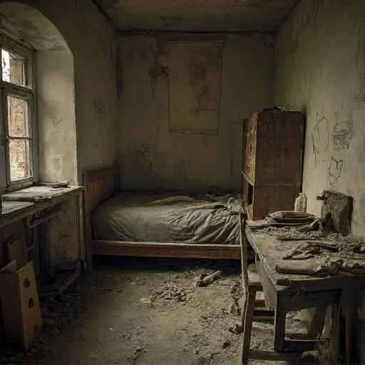 The house remains abandoned, its tools, designs, and cartouche a quiet testament to interrupted craftsmanship and unresolved devotion.