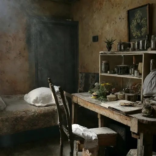 The house remains abandoned, its jars, powders, and compendium a quiet testament to interrupted apothecary practice and unresolved devotion.