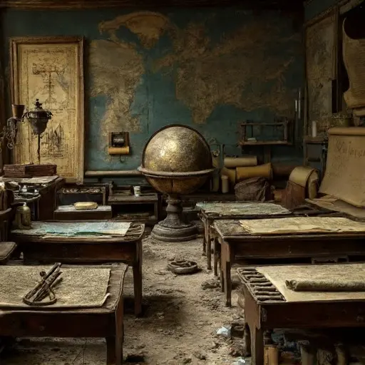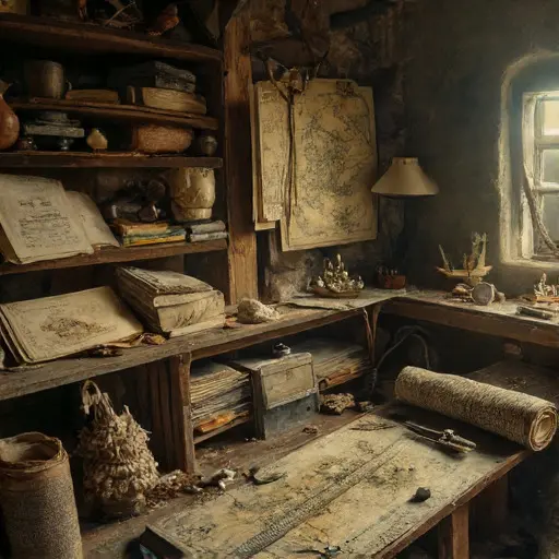 This room belonged to Hideo Ishikawa, geographer and cartographer (b. 1876, Kyoto), trained in Japanese maritime academies and European workshops. His skill is evident in detailed coastal surveys, hand-inked rivers, and topographical precision. A note pinned to a shelf references his sister, Akiko Ishikawa, reminding him to “complete the northern archipelago chart.” Hideo’s temperament was meticulous, disciplined, and contemplative; ambition lay in producing accurate regional maps for naval use and scholarly publication, each drawn with exacting care.