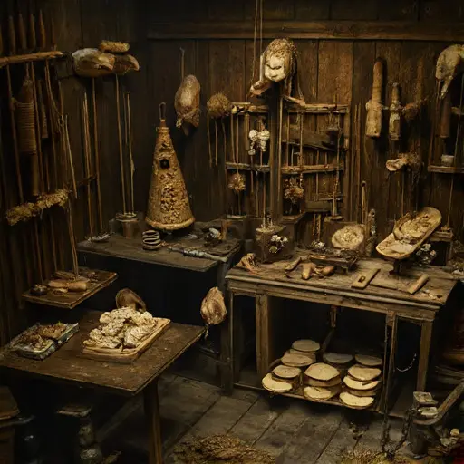 His days unfolded in careful ritual: dawn shaping of heads and hands, midday threading of crossbars, dusk painting cheeks under a steady lantern. Tools remain arranged with quiet reverence—gouges sorted by curve, pigments warmed gently, string bundles coiled like sleeping serpents. Patrons once praised his marionettes for their poise, humor, and uncanny subtlety.
