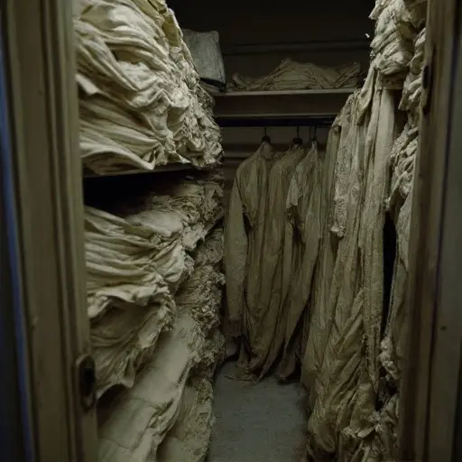 In the second-floor Linen Closet, a small, utilitarian space, a single piece of evidence remains of Eleanor’s final decision to abandon all domesticity. On the highest shelf, which was used to store the finest, most delicate lace tablecloths, the contents were partially removed, but a distinct, thick, and perfectly uniform layer of undisturbed dust covers the remaining linen.