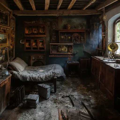 The final discovery is the silence of interrupted precision. No explanation survives. The house remains abandoned, clocks idle, movements unassembled, and every ledger frozen mid-entry, a testament to halted labor, disrupted vocation, and unresolved horology lingering quietly in every room.
