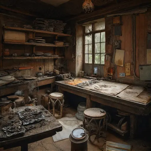 The house remains abandoned, plates, tools, and prints frozen in quiet incompletion, every engraving and impression suspended, awaiting hands that will never return.