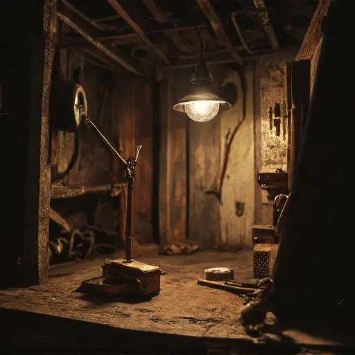 The loft hums with a silence that feels almost rhythmic, as though time itself once pulsed inside these walls. A faint metallic scent drifts from the bench where open watch cases lie facedown, their gears stilled midthought. Dust collects in pale crescents around the stool legs.