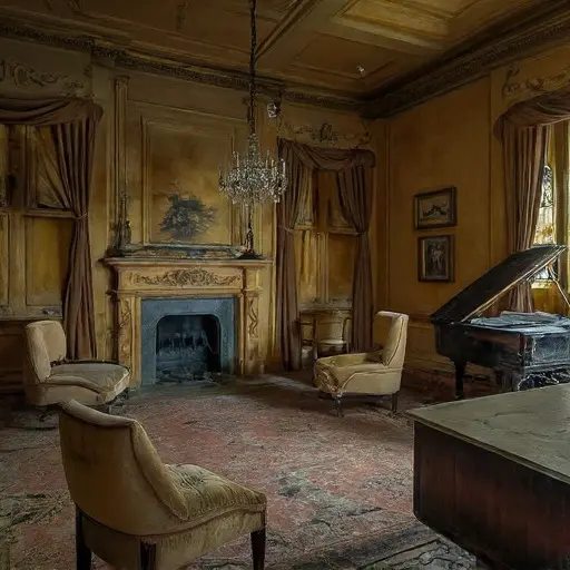 Nothing here is staged. Thornevale House remains as it was left — not abandoned in haste, but simply forgotten. To enter its rooms is to be met with silence so complete that it seems to press against the ears.