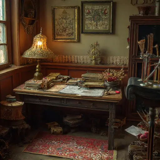 Clues across these rooms recall Farid Reza Parvaneh, born 1877 in Shiraz, shaped by traditions that prized careful strokes and disciplined practice. In the Manuscript Alcove, reed pens are trimmed to precise tapers; pigments ground on porcelain plates reflect the jewel tones of Persian illumination. A silk-wrapped folder holds pattern guides for nasta‘liq script, notations added in firm but elegant hand. His routine emerges in subtle habits: brushes resting on wool-lined trays, water cups placed in exact reach, pages weighted by modest brass stones.