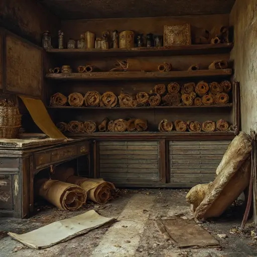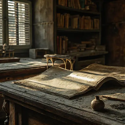 The house remains abandoned, desks, quills, and manuscripts frozen in quiet incompletion, every scroll and stroke awaiting hands that will never return.