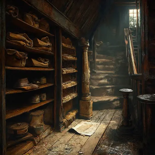 Pinned near the lowest crate lies a slip in Lorian’s thinning script: “Finish vowel curve — tomorrow.” Tomorrow never came to Marrowquill House.