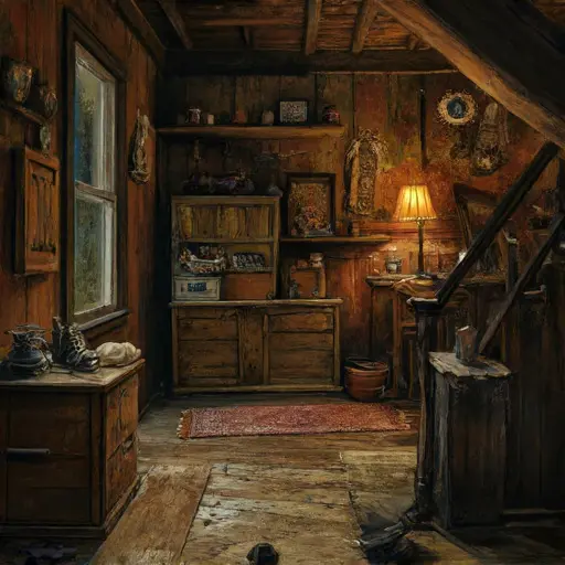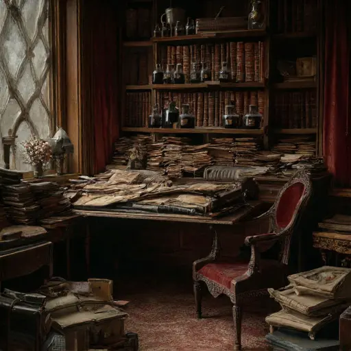 Cyril Harton Mirelatch, a clerical tabulator for a regional grains board, lived here with his wife, Livia, and their daughter, Clara. Cyril had a reputation for unwavering punctuality and for tallies so cleanly drawn that colleagues swore they could measure their rulers against them. His habits echo through every remaining trace. In the Study, ledgers stand in tight vertical stacks, envelopes sorted into categories labeled in neat, upright script; blotters bear faint circular scars from long-evaporated ink.