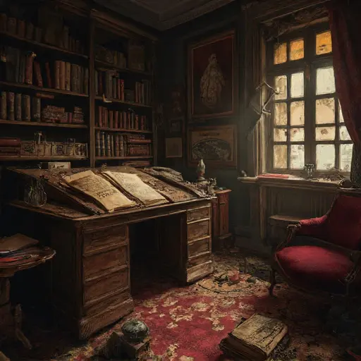Callum’s careful temperament—habit-driven, quietly dutiful—forms the architecture of the house’s routines. In the Study, ledgers stand stacked in straight, unwavering columns; receipts sorted into labeled envelopes; and blotters preserved with faint ghosts of once-fresh ink.