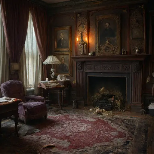 The parlour air is thick with the softened notes of old linen, dried ink, and varnish long surrendered to time. Nothing suggests urgency. Instead, Morrowhask House feels suspended, as though its occupants stepped out for a short errand and simply never returned.