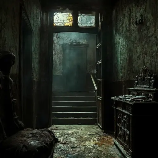 The abandoned Victorian mansion known as Murkmire Aster House rises like a bruised memory at the edge of the fog-thickened woods, its sagging corridors whispering to anyone who dares approach. Inside, the scent of aging wood and wilted flowers clings to every drifting beam of dusty light. Floorboards murmur underfoot as if startled awake, and the silence has weight—an attentive stillness, almost a listener itself. One feels watched not by people but by the house, as though the walls remember more than they wish to share.
