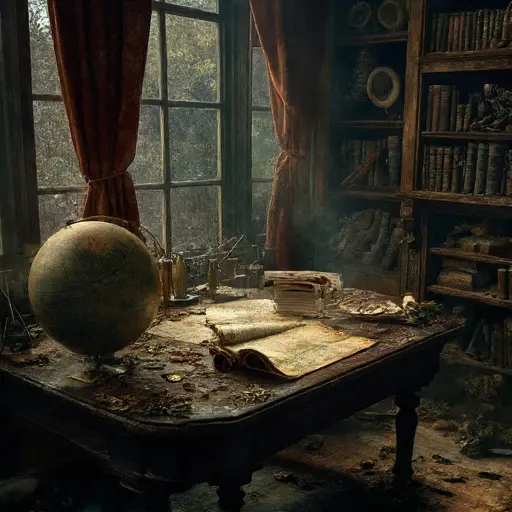 In these dim, breathless rooms lived Erasmus Quill, the once-renowned Cartographer whose obsessions outgrew the world beyond his doorstep. His ink-stained fingers chronicled continents, coastlines, storms, and shadows—yet it was his final maps, left curling across the mansion’s study, that hint at something stranger. Erasmus vanished without farewell, and Murkmire Aster House has waited ever since.