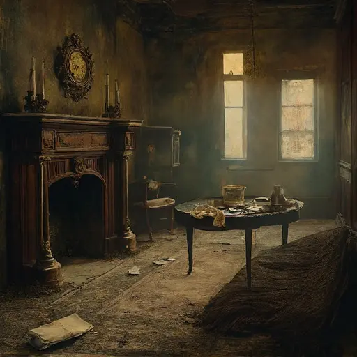 Immediately noticeable is the massive, darkened oak Grand Staircase, its carved newel post worn smooth not by decades of use, but by the hands of one man: Silas Oriel Westerly. Everything here is heavy, detailed, and utterly immobile, a monument to a life that ceased without warning. A brass umbrella stand still holds three walking sticks, and a pair of woman’s velvet slippers rest beneath the bench seat of the hall closet, placed with care, as if the owner only just stepped out for a moment.