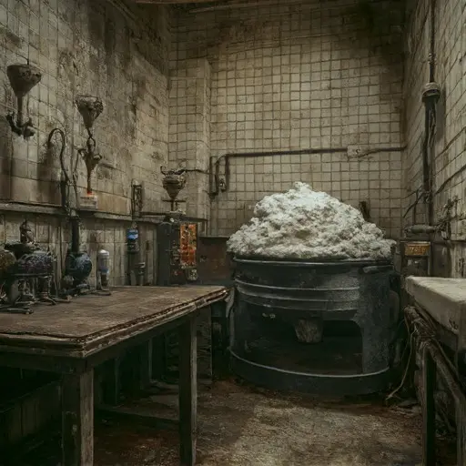 Phosgene-Bake Hall was the fortified residence and elaborate laboratory of Dr. Alistair Vance, a brilliant but pathologically obsessive anatomist and wax modeler of the late 19th century. His professional life demanded the meticulous study of human pathology, the creation of flawless, life-like anatomical models for medical training, and the pursuit of absolute, permanent preservation of form. Personally, Dr. Vance was tormented by a crippling fear of biological decay and a profound desire to substitute the fleeting, vulnerable nature of the human body with something immortal, beautiful, and controlled: wax. He saw the Hall as his ultimate kiln: a space where he could finally create a perfect, non-decaying replica of his entire family, ensuring they would never suffer the indignity of illness or decomposition.