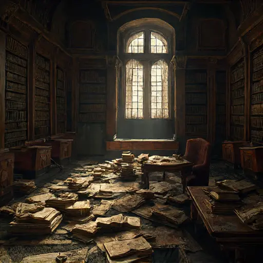 The Dining Room, where so many formal, silent meals were once eaten, now hosts only the slow disintegration of a vast oak table. A scattering of silver cutlery, blackened by sulfide, lies where it was hastily put down on a linen cloth now fused to the wood. The quiet, deep shadows of Aethelburg House have held its inhabitants captive in memory, but they offer no solace, no closure. The silence is permanent, the inventory of sorrow complete.
