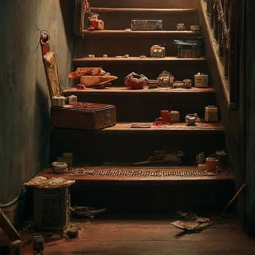 The stairwell holds a warmth gone thin, scented with pine boards and ink rubbed nearly dry. Each tread bears smudges from quiet hours spent bending over paper. Though nothing is overturned, the hush carries a shift—an intention pressed too far toward precision, then left behind.