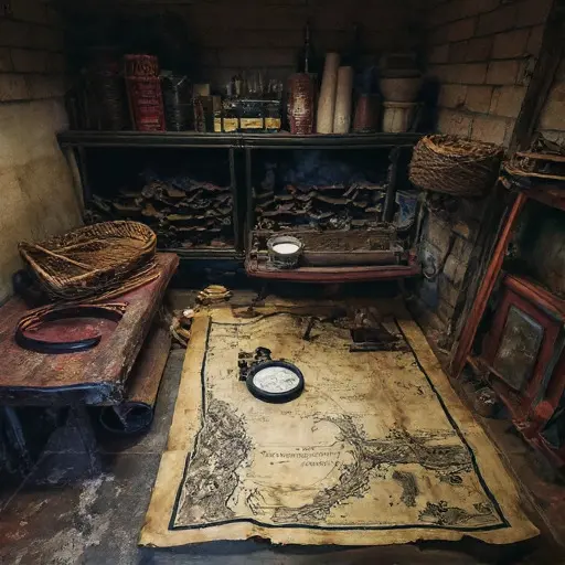 A heavy, expectant stillness fills the Cartographer’s Loft, where penciled grid notations on a map stop abruptly, hinting at interrupted plotting and halted exploration.
