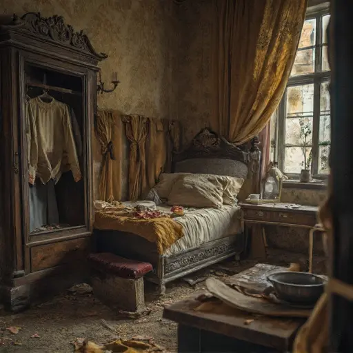 The house remains abandoned, books, hides, and tools awaiting hands that will not return, the quiet heavy with uncompleted mastery.